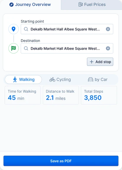 Enter your start and end points, then save your route as a simple PDF to print or keep.